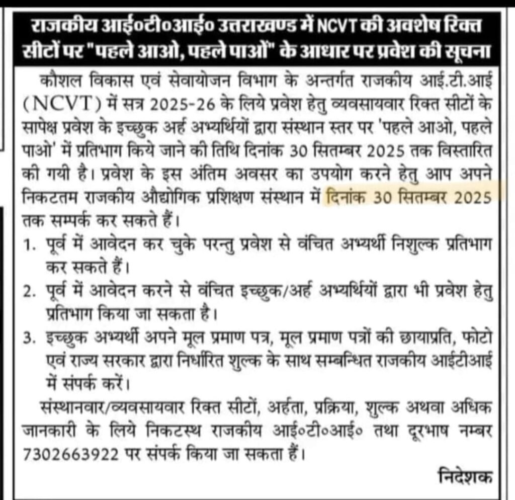 - सत्र 2025-26 हेतु रिक्त सीटों का विवरण
